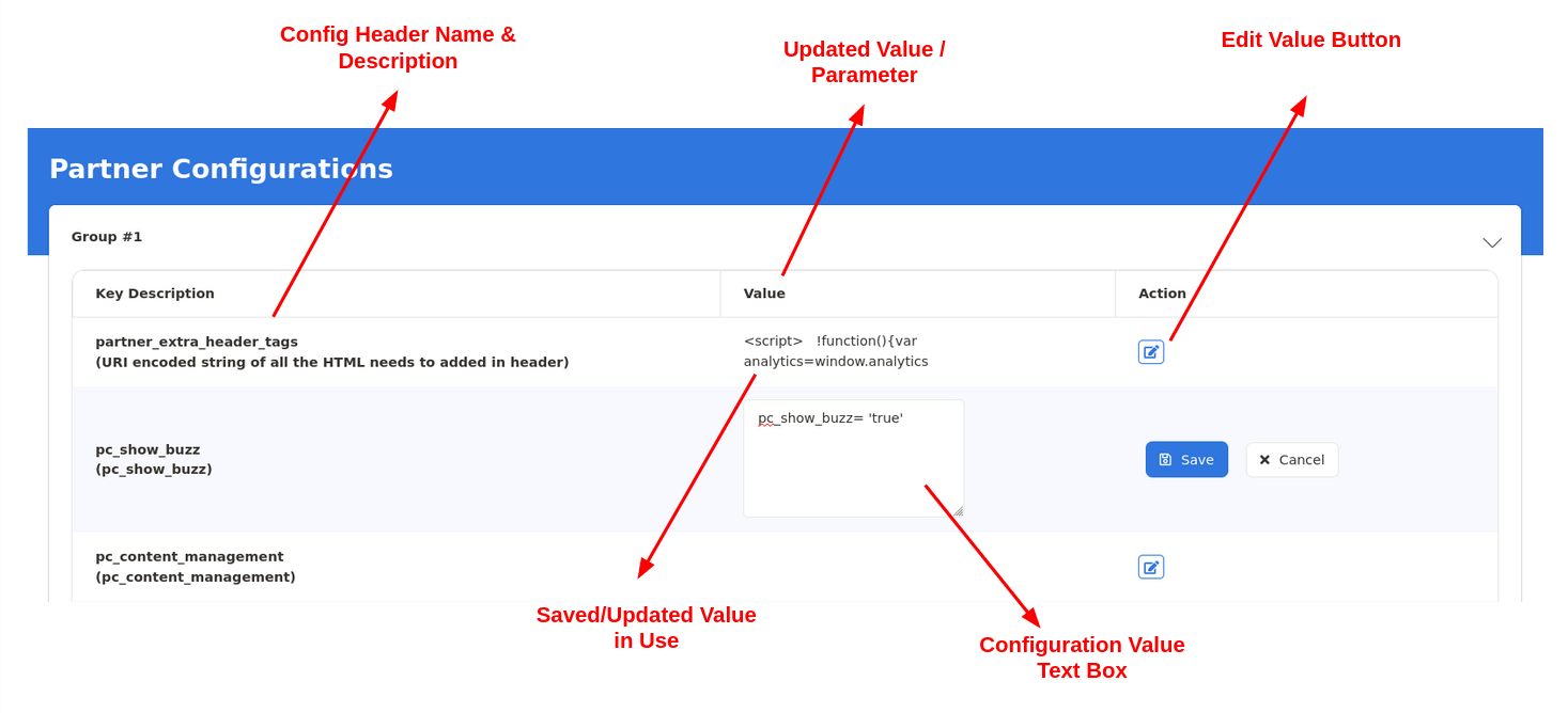 The Configuration value text box opens when the Edit Value Button is Selected. Enter the new Value inside the text box and click on Save button to modify the Partner Configuration.